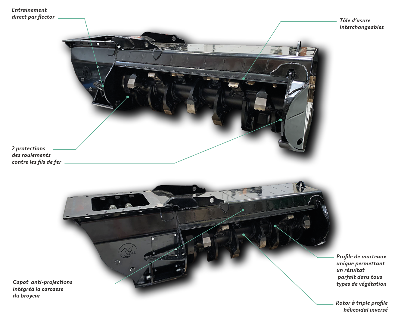 C’est LE produit idéal pour obtenir une qualité de broyage optimal en très peu de passe pour la gamme de pelle de 8,5 à 15 tonnes.